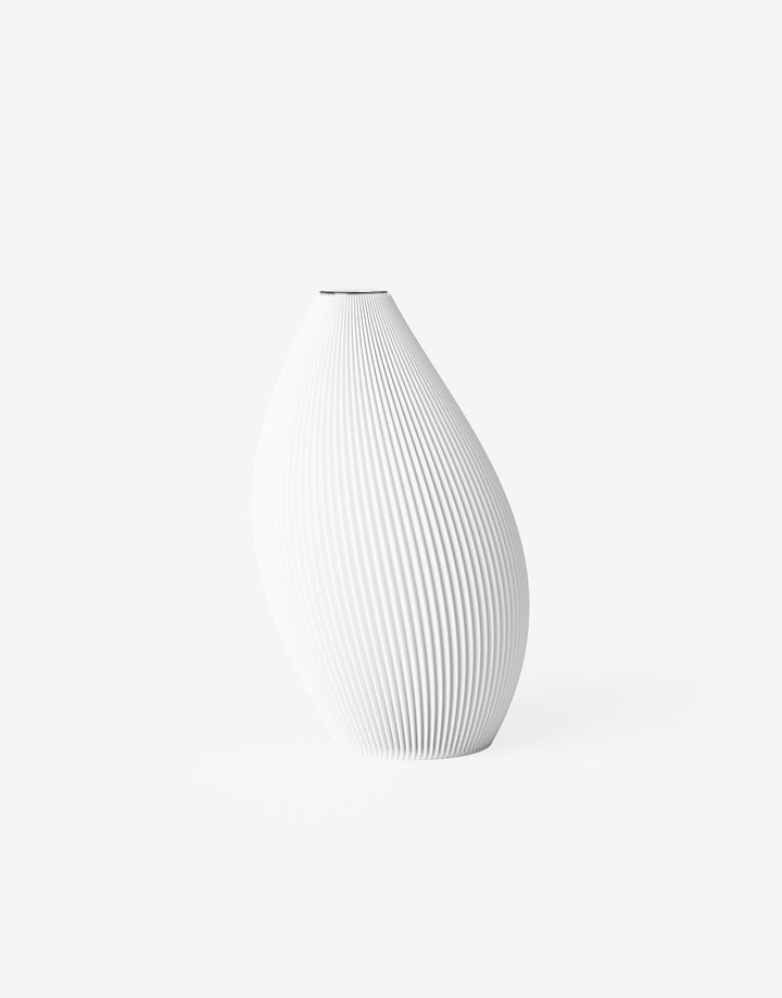 The unique curves of the Bent vase change its shape depending on its direction and make it a transformative highlight in any interior.