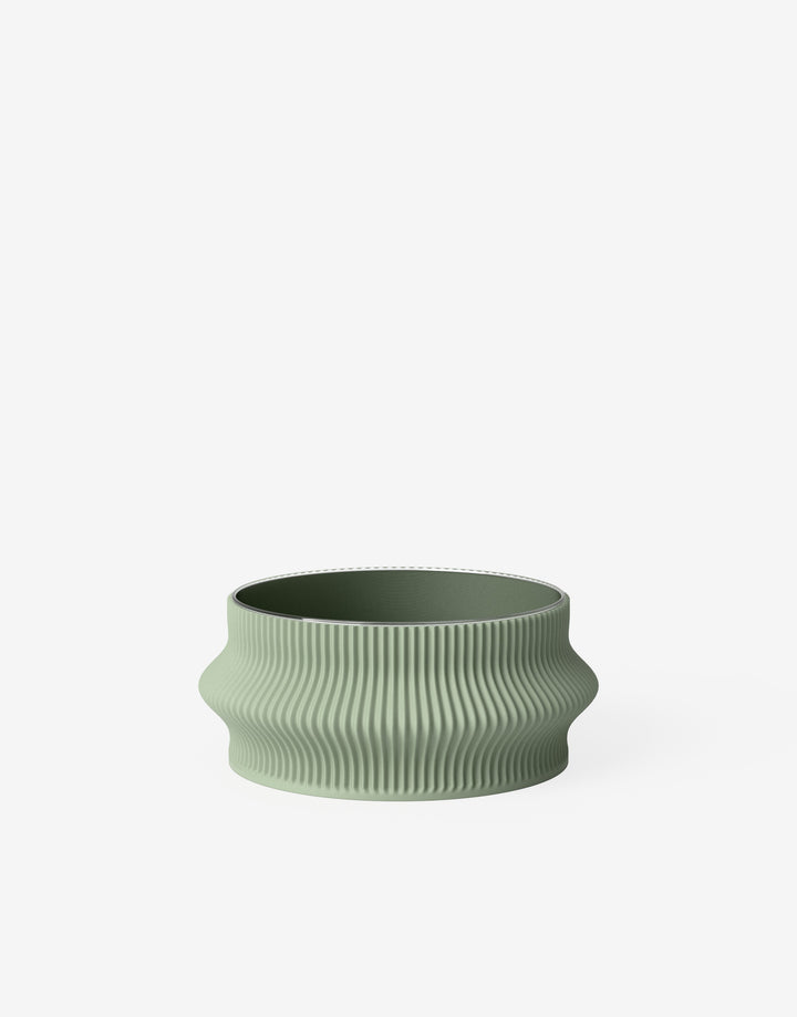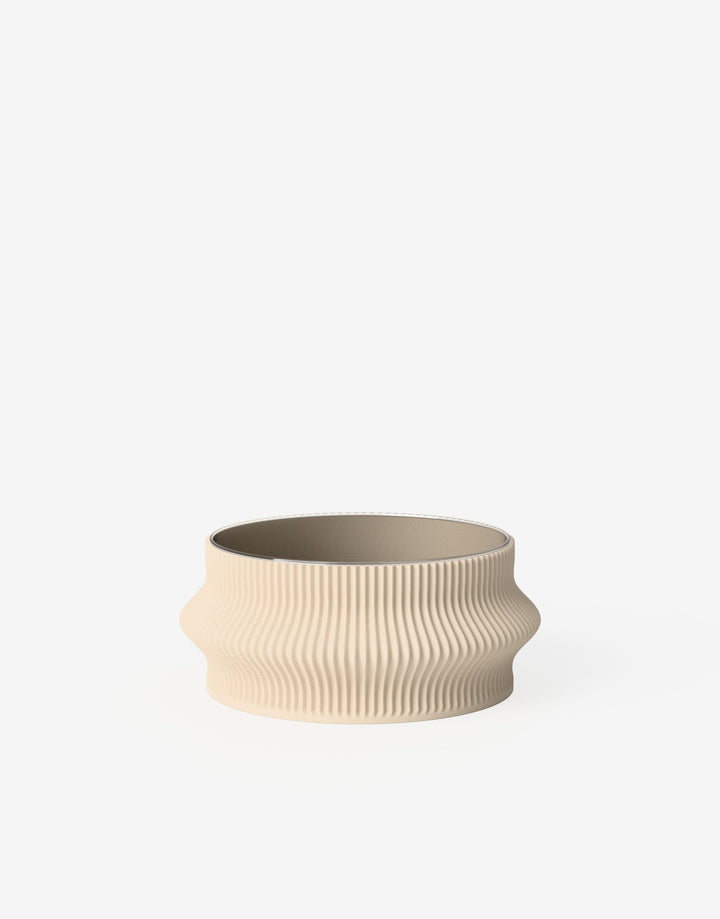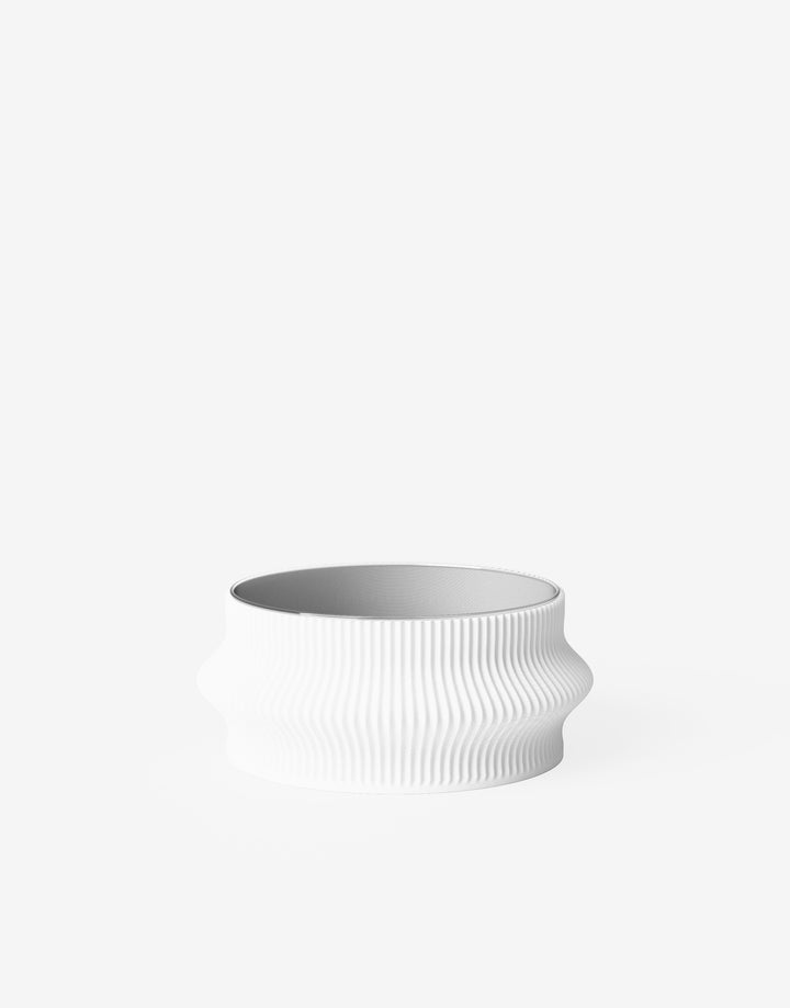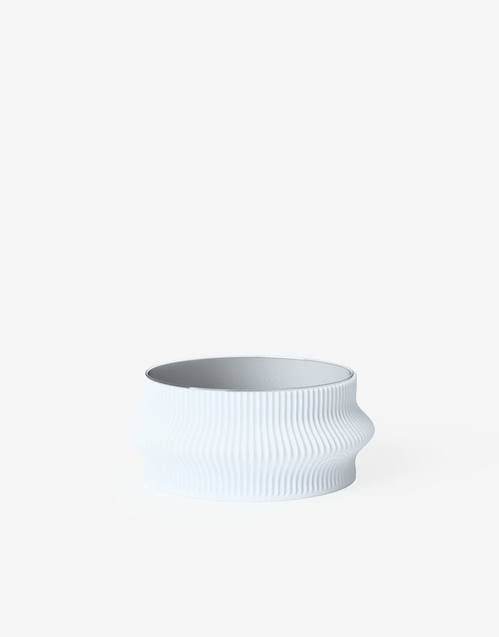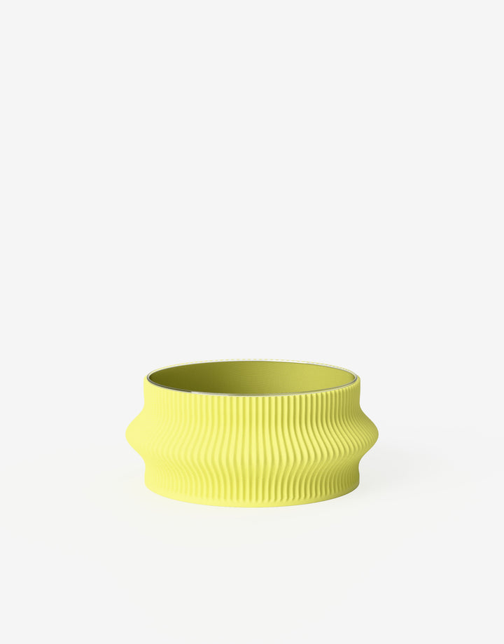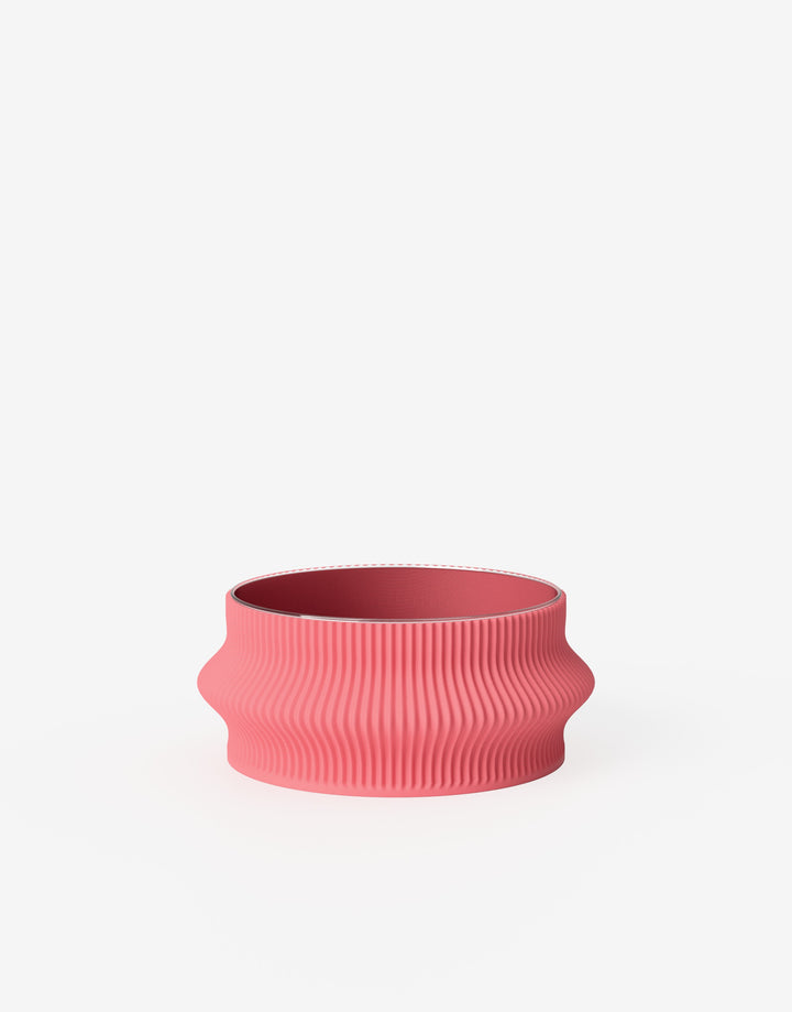 The Cavity bowl embodies an unmistakable multitasker with its unique shape in ripple design. Its flat and bulbous body makes the bowl an expressive, one-of-a-kind object that creates an adaptable living environment with versatile decoration options. From a flower vase to a decorative bowl or a fruit or snack bowl, the Cavity is multifunctional and remains an absolute eye-catcher in every usage.