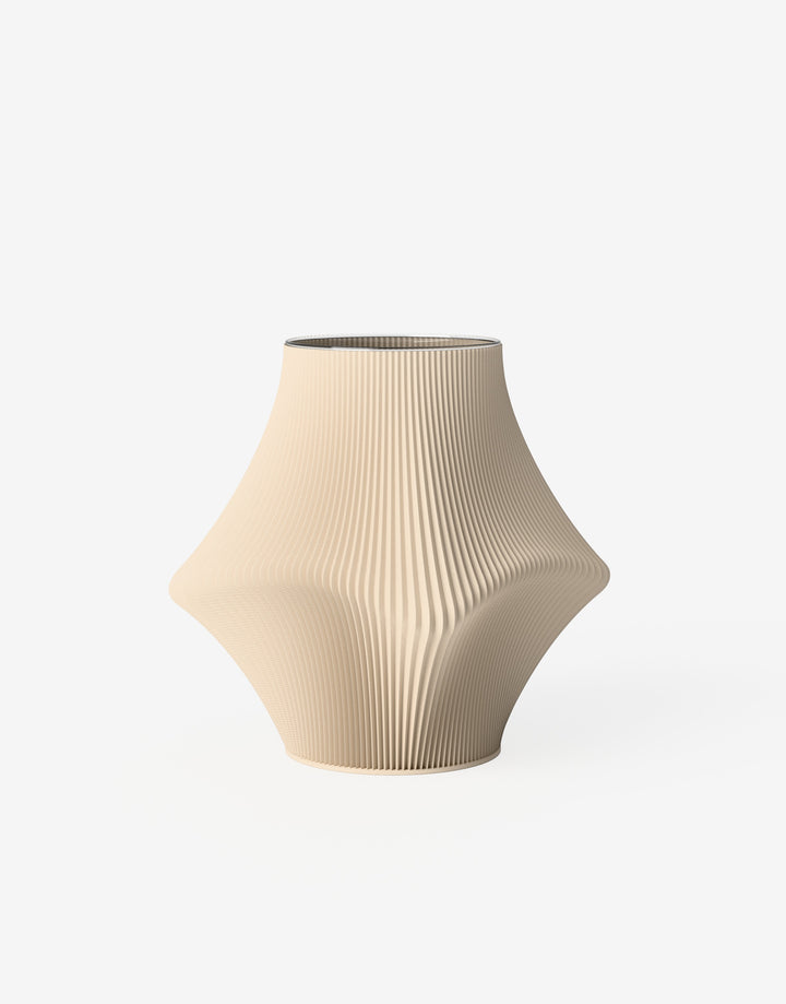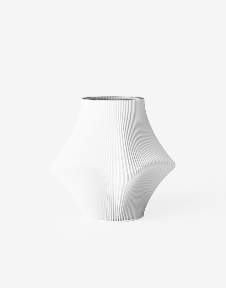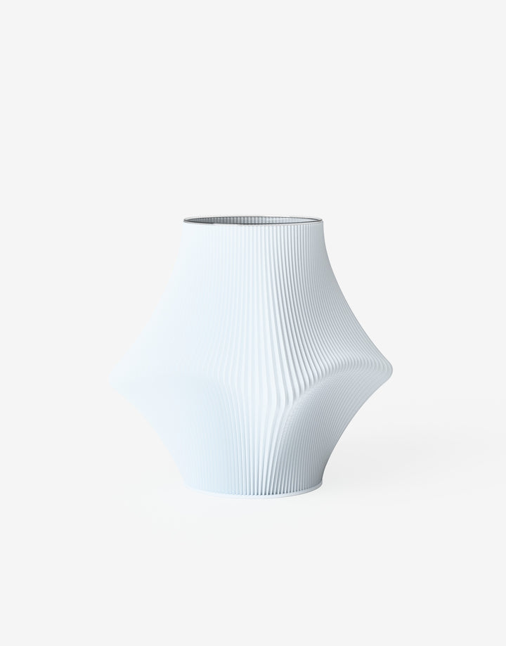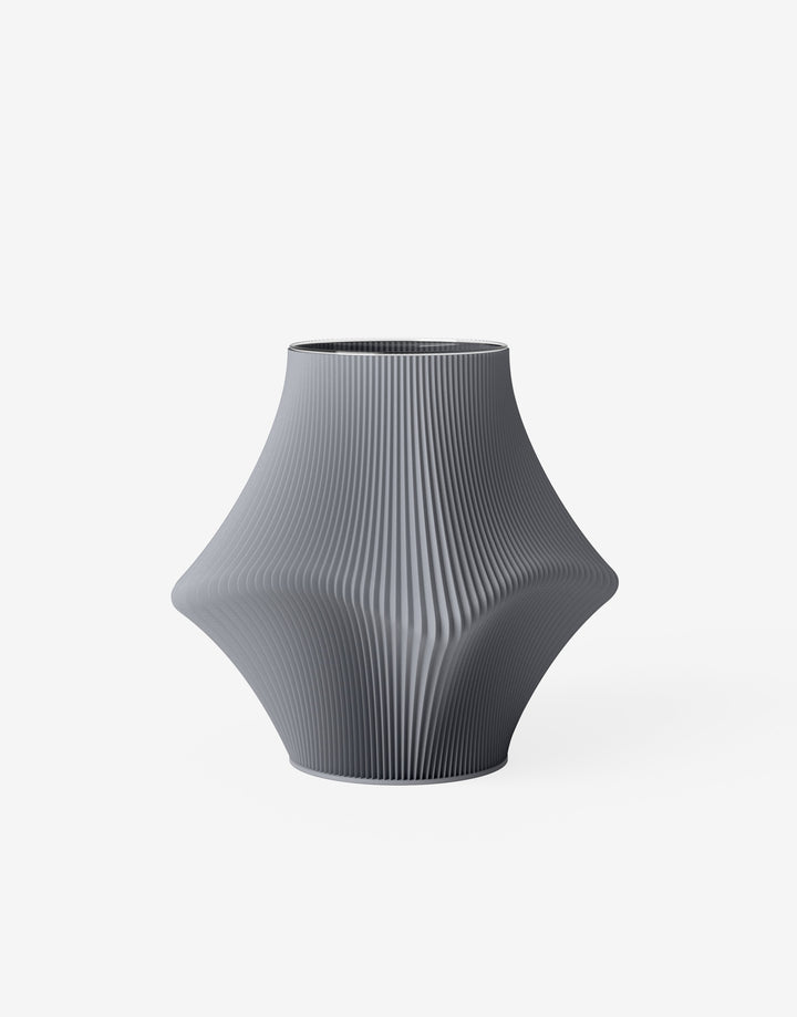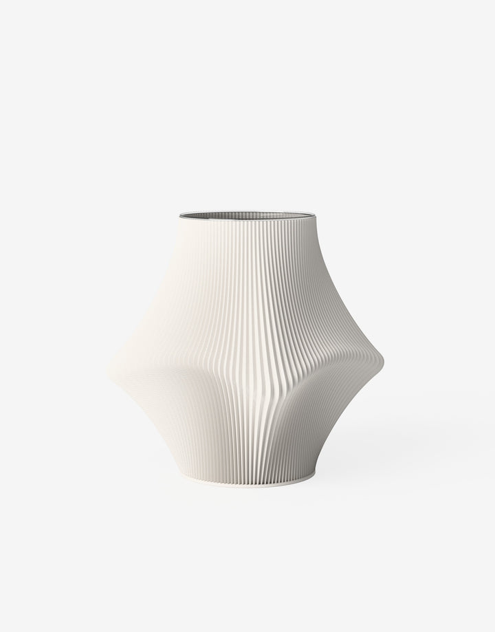 The Brim vase impresses with its striking, square-organic silhouette and detailed ripple design structure, which elegantly plays with light and shadow. Its distinctive shape makes it a modern statement piece – perfect for bold floral arrangements and contemporary interior design.