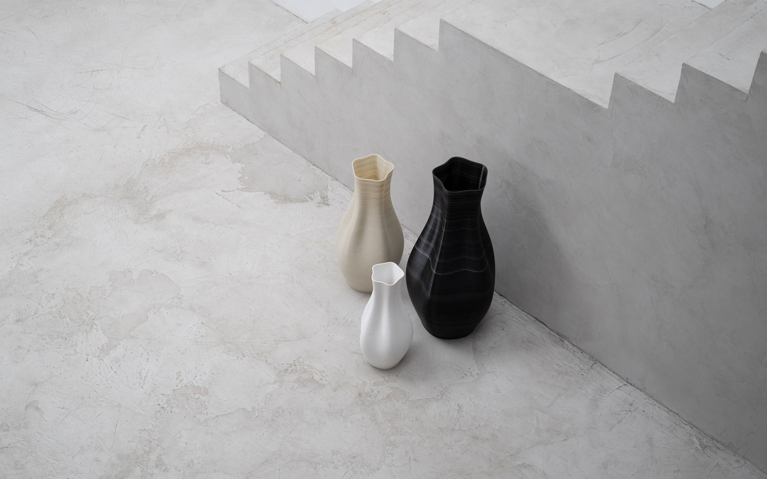 The special feature of the products: All design objects are manufactured in northern Germany using mainly recycled materials through additive manufacturing. Every floor vase is meticulously quality-checked and thoughtfully hand-packaged.