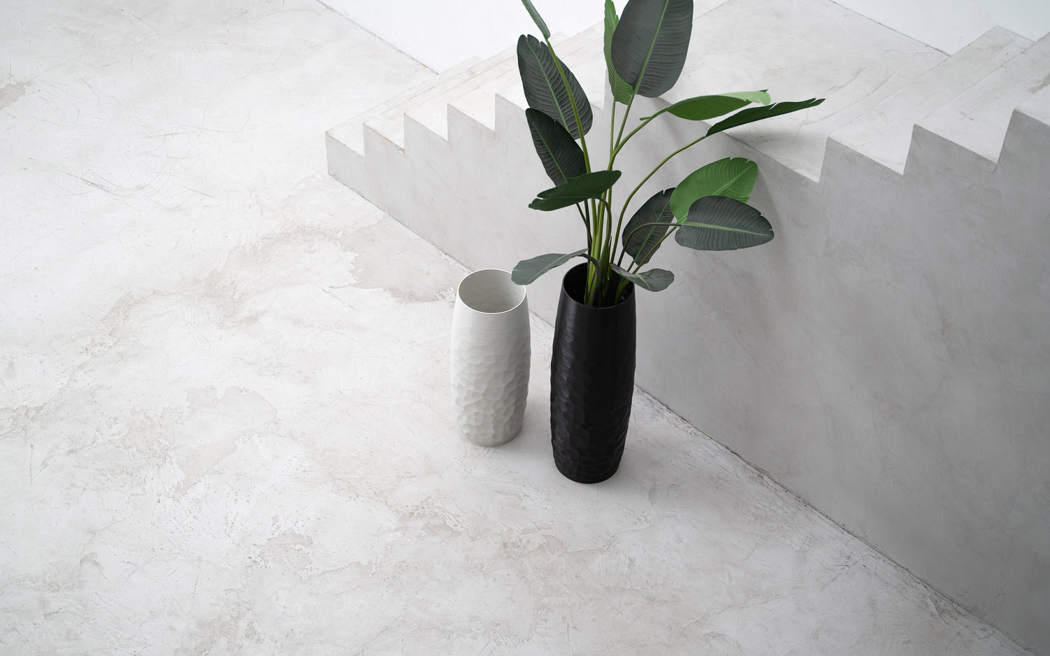 The Valley planters are characterised by a unique surface structure and lend a distinctive character to any living space as a plant pot for indoor plants or as a large floor vase for Pampas grass or branches.