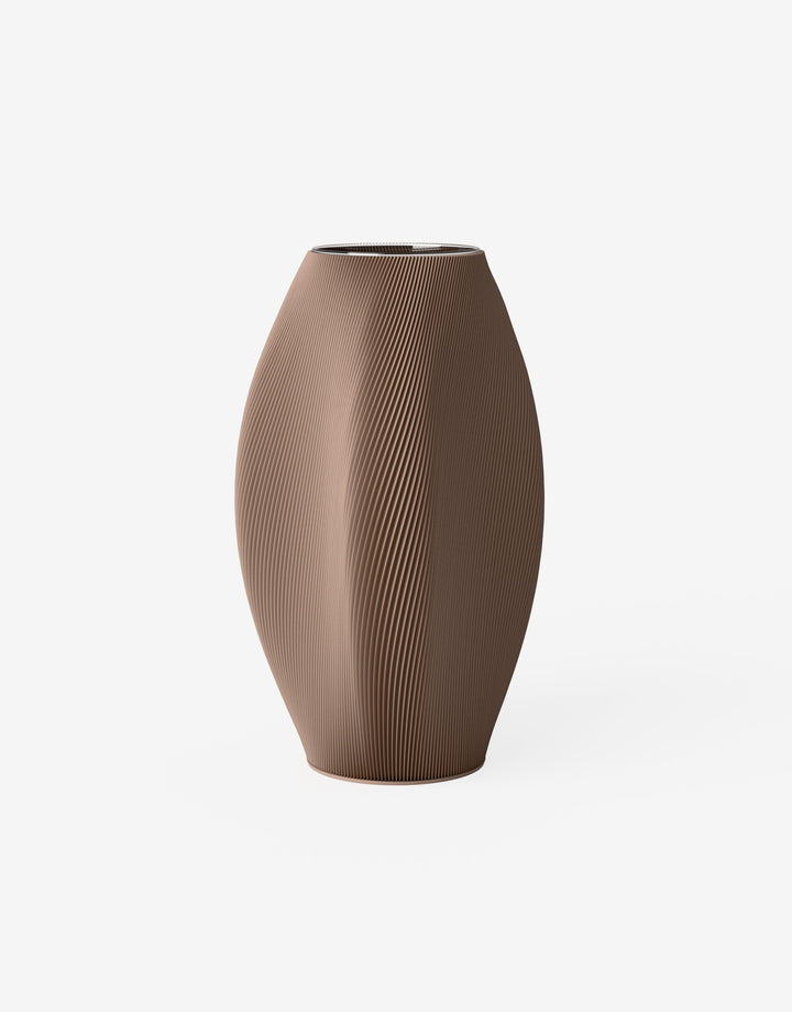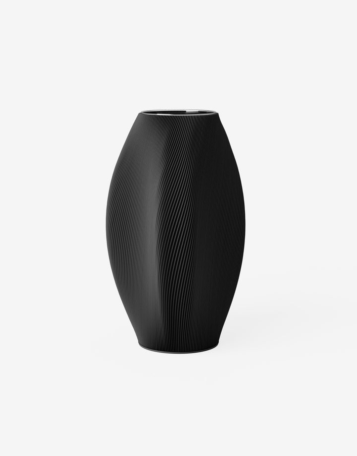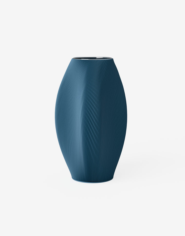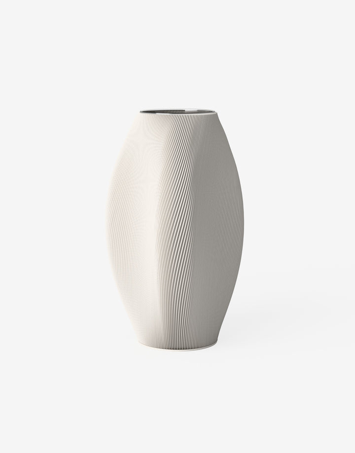 Die Bay Vase kombiniert elegante Formgebung mit organischem Design. Die geschwungenen Seiten spielen dezent mit dem Licht und setzen kunstvolle Details.